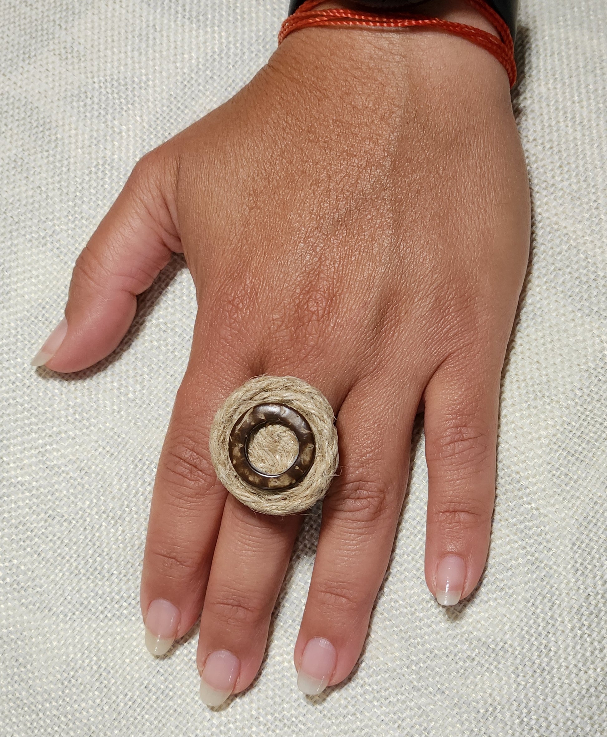 Material: Jute is a natural rough plant fiber that comes from a flowering plants known as the Chorcorus. These plants are indigenous to tropical and subtropical environments around the world, like Asia, Africa, and South America. Coconuts are a tropical tree species that are found in many islands, mainly produced in the islands close to the Pacific and the Indian Oceans. In South Asia, coconuts are known as sriphala, or “fruit of the gods,” symbolizing usefulness, selfless service, prosperity and generosity.